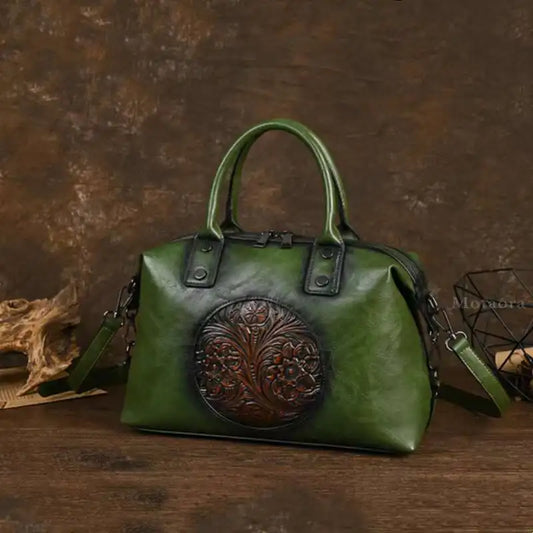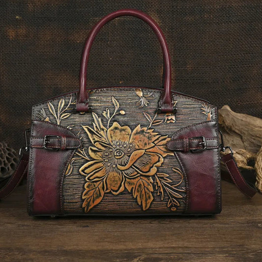 • Mochila Floral Inês Vintage – Em Couro Genuíno Premium