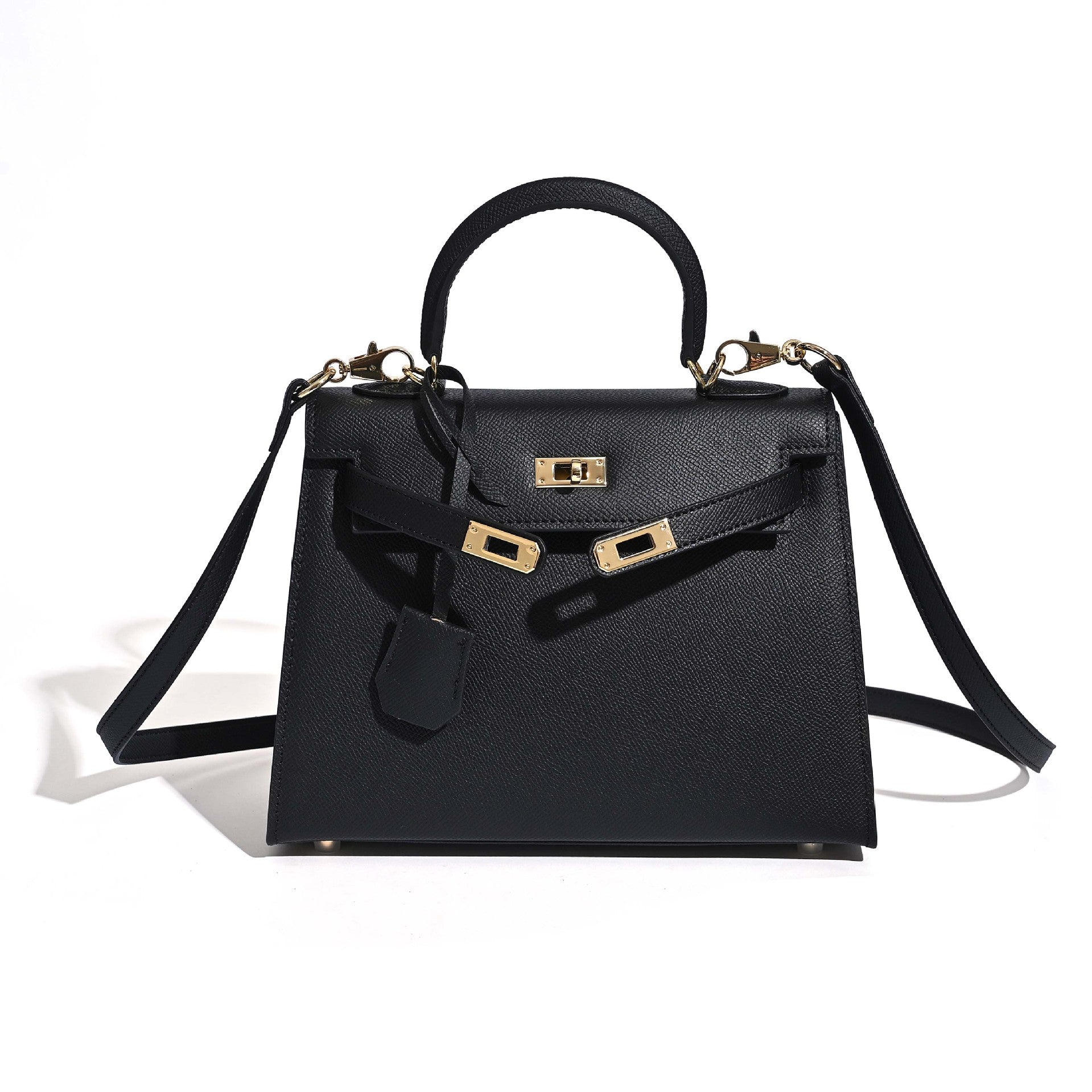 Fabricada em couro genuíno granulado premium, oferece elevada durabilidade, resistência ao uso diário e uma estrutura firme que mantém sempre a forma elegante da bolsa. Cada detalhe foi pensado para transmitir sofisticação, desde as ferragens douradas até à silhueta estruturada que nunca sai de moda.