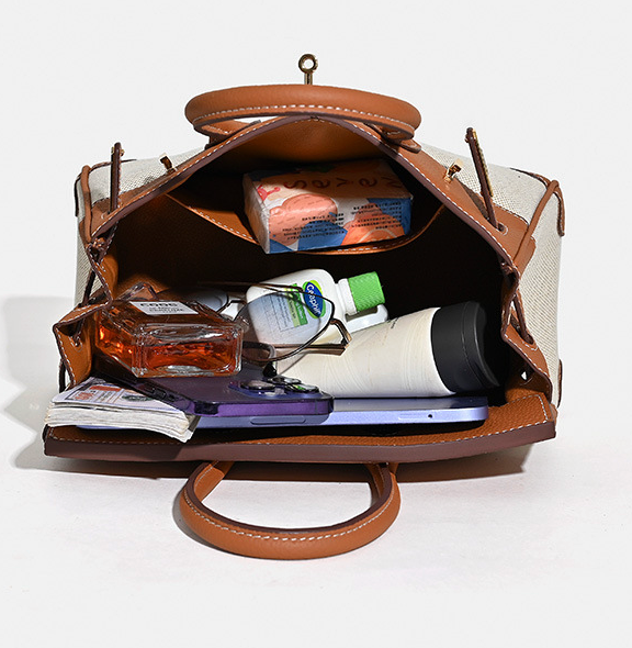 Jane Riviera 25 – Bolsa em Couro Genuíno Togo e Lona Platina