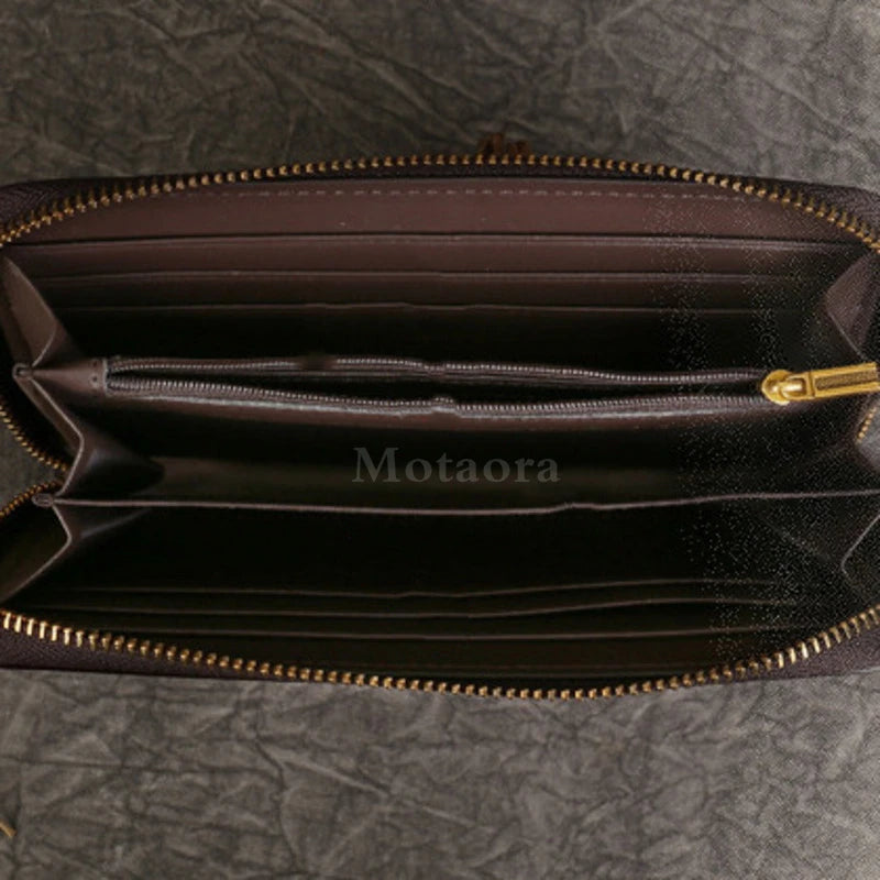 O formato longo permite organizar facilmente cartões, notas, moedas e até telemóvel num único espaço prático. O interior bem estruturado oferece vários compartimentos que ajudam a manter tudo arrumado e acessível.