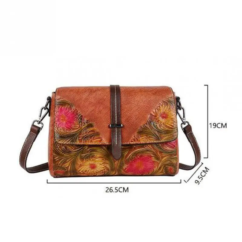 Descrição A Mala Valentina Vintage da Lusitanna combina artesanato tradicional com um design elegante e intemporal. Produzida em couro genuíno de primeira camada, apresenta um delicado relevo floral que acrescenta textura e sofisticação à peça. O formato flap estruturado oferece um equilíbrio perfeito entre elegância e funcionalidade, permitindo transportar os essenciais do dia a dia de forma organizada. O interior inclui vários compartimentos práticos, ideais para telemóvel, carteira e pequenos objetos pessoais. O fecho duplo com zipper e hasp garante maior segurança, enquanto a alça ajustável permite utilizá-la confortavelmente ao ombro ou a tiracolo. Uma mala versátil e refinada para o quotidiano. Principais Características • Couro genuíno de primeira camada (cowhide) • Design vintage com relevo floral elegante • Formato flap sofisticado • Estrutura macia e confortável • Interior com vários compartimentos organizadores • Bolso para telemóvel e bolso com fecho • Bolso exterior funcional • Fecho duplo com zipper e hasp • Alça ajustável para ombro ou tiracolo • Peso aproximado: 0,67 kg • Dimensões: 26,5 × 19 × 9,5 cm • Ideal para uso diário, trabalho ou passeios elegantes